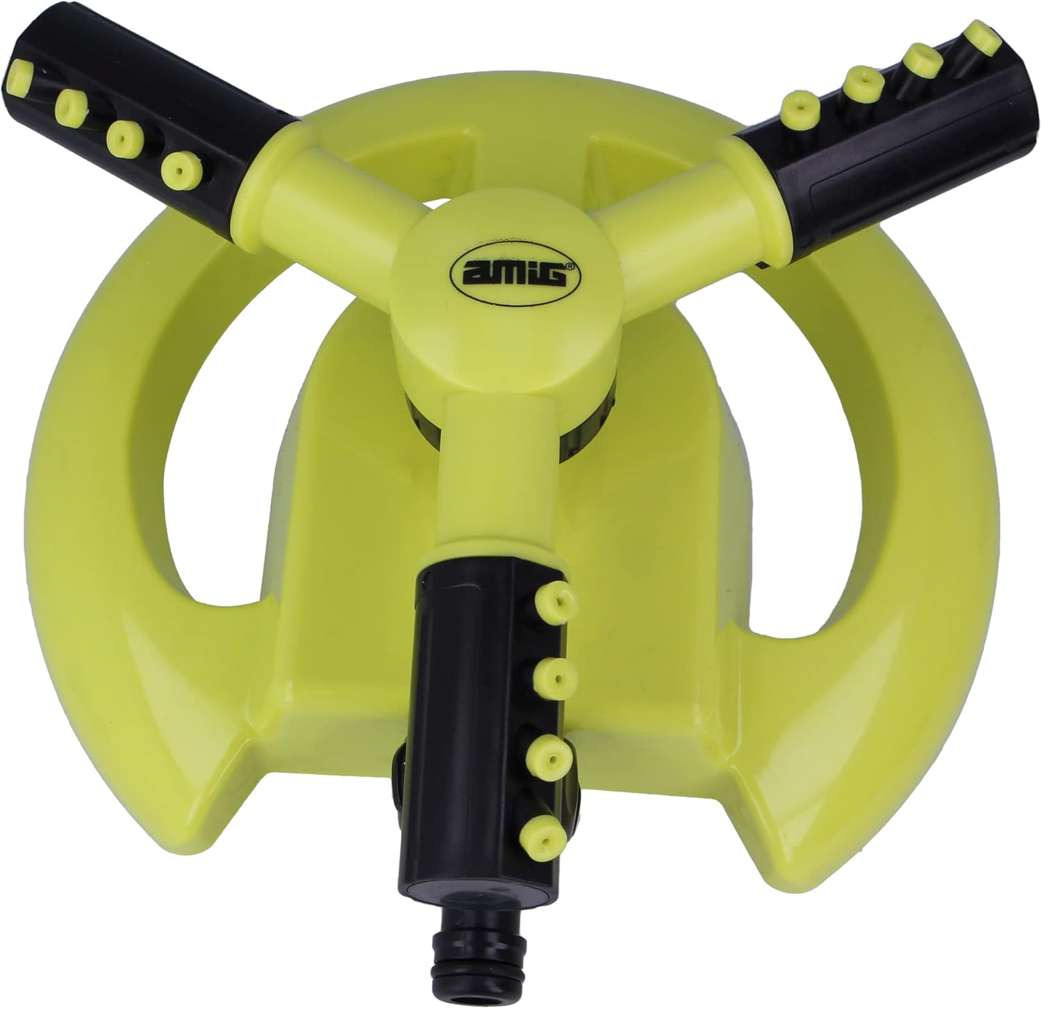 If you are looking for an irrigation solution for your garden, orchard or lawn, this sprinkler is the perfect choice. With superior performance, durable design, and long watering range, it is the ideal tool to keep your plants healthy and happy. Don't wait any longer to improve your gardening tasks! Technical features: Made of high quality ABS With quick connector Irrigation surface of 63 m². Finish: pistachio green and Amig black, a renowned brand of tools and accessories for the home, presents its new range of gardening products, which includes tools for pruning and irrigation, as well as accessories for orchards. With a wide range of options, this new segment is ideal for those who want to maintain and maintain their garden or orchard efficiently and with quality products.