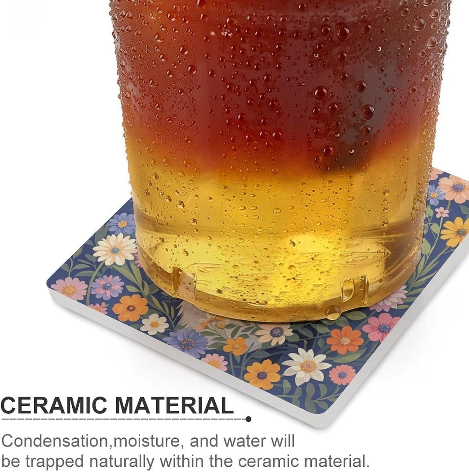Introducing our square ceramic drink coaster — a blend of thoughtful design and practicality tailored for anyone who values both style and function. The ceramic surface acts as a reliable heat insulation cup mat, guarding your favorite coffee table, dining counter, or office desk against hot coffee, boiling tea, or cold beverage rings. Paired with a cork backing, this anti-slip drink cup mat ensures your mugs and glasses stay securely in place, eliminating the stress of accidental knocks or spills.We understand that one size doesn't fit all, which is why our ceramic coasters come in flexible set options of 4 or 6 pieces, each measuring a perfect 3.7" x 3.7". This versatile size accommodates everything from dainty teacups to bulky coffee mugs, making it a go-to choice for everyday use. As an easy to wipe drink cup mat, cleanup is a breeze — a quick swipe with a damp cloth is all it takes to remove spills or dust, so you can spend less time tidying and more time enjoying your space.These personality mug mats aren't just for personal use — they're a stylish addition to commercial spaces too. Place them in a cozy cafe to enhance customer experiences, or set them out in a restaurant to add a polished touch to dining tables. Their sleek, understated design pairs seamlessly with any decor, from modern minimalism to warm, rustic styles. As waterproof coasters, they handle cold drinks with condensation just as well as hot beverages, making them a year-round essential.