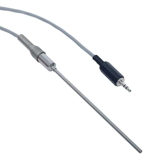 The temperature probe used in conjunction with ultrasonic processors with temperature controller prevents harmful overheating of the sample by terminating the ultrasonic when the sample reaches a predetermined temperature limit. Use probe with 500- and 750-watt ultrasonic processors 04711-30, 04711-35, 04711-40, and 04711-45.