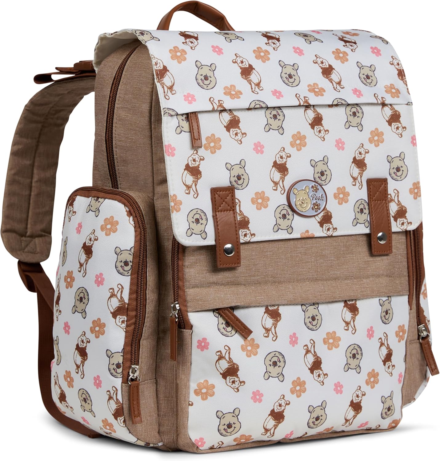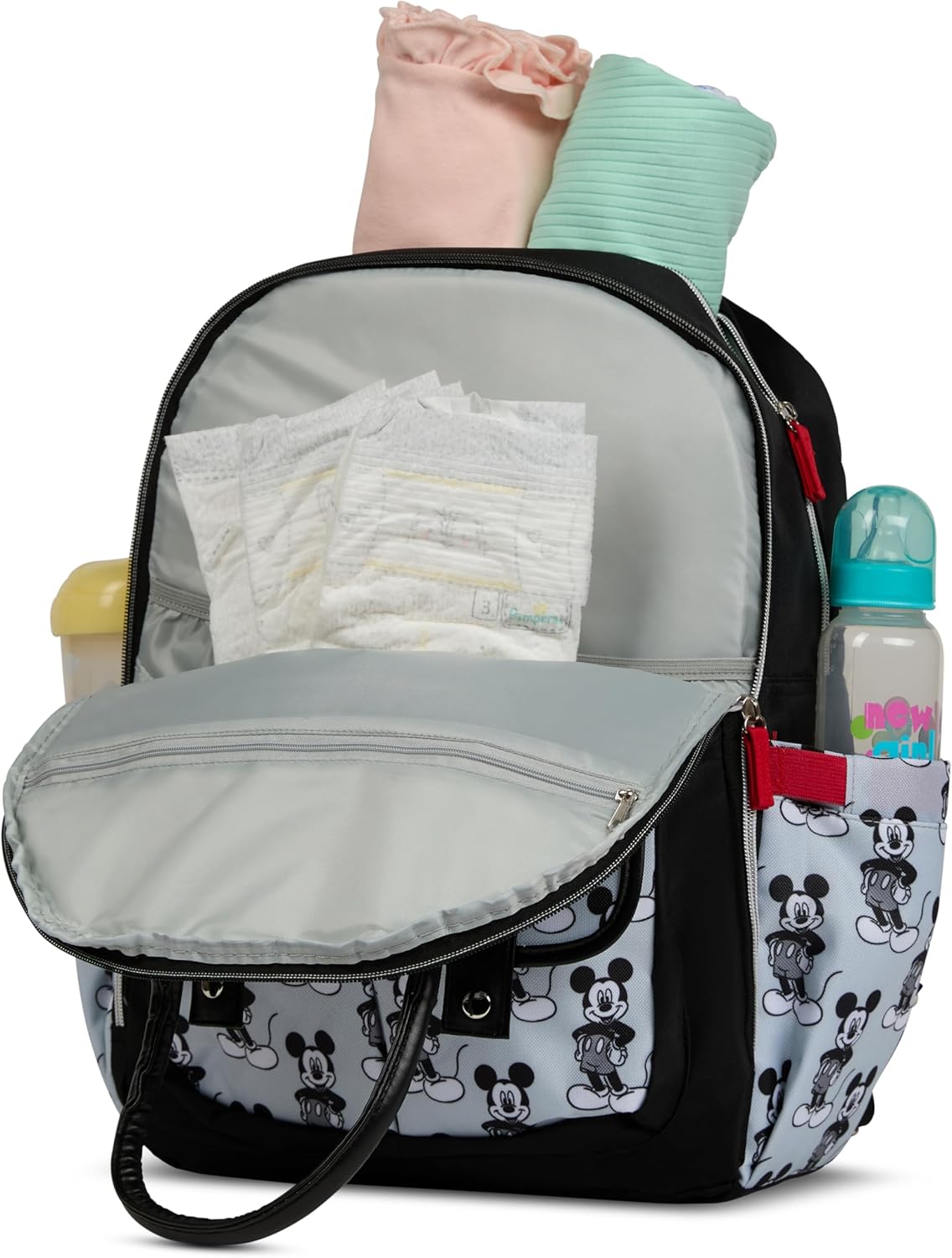 Every day with your little one is a new story waiting to unfold. From quiet mornings to busy afternoons on the go, this officially licensed Disney Diaper Bag Backpack keeps everything you need close at hand—while surrounding you with the charm of beloved characters. Designed for parents of newborns, infants, and toddlers, this 16-inch backpack offers generous space and thoughtful organization. Multiple interior and exterior pockets keep diapers, wipes, extra outfits, snacks, and daily essentials neatly arranged and easy to reach. Insulated bottle holders help maintain bottle temperature while you’re on the go, and the included coordinating changing pad ensures you’re always prepared for quick, comfortable diaper changes wherever the day leads. Crafted from durable, lightweight nylon, this diaper bag is easy to clean and made to handle busy schedules, growing families, and countless memories in the making. Comfortable to carry and beautifully designed, it transitions effortlessly from baby’s earliest days through toddler milestones. Available in beloved Disney character styles including Mickey Mouse, Minnie Mouse, Stitch, and Winnie the Pooh, this backpack blends practical function with the joy of cherished storytelling. Because every family adventure deserves a little more magic.
