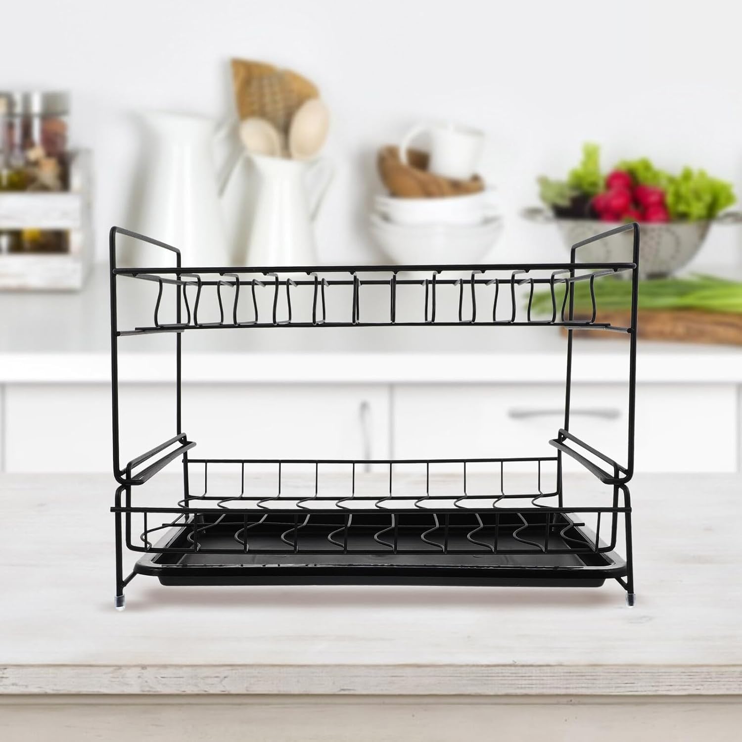 Package Include 1 x storage drain rack Features -Product Info:Double-layer tableware storage rack - Material: Iron - Color: Black - Size: About 36.00X23.50X25.00cm/14.15X9.24X9.82inch - Humanized design for convenient use and save more space, looks modern and elegant Double-deck Draining Rack. - makes it more tough and , yet still lightweight. - Selected iron materials, stylish personality, environmentally friendly and tasteless. - A good storage rack for kitchen, bathroom, living room, bedroom and more Kitchen Accessory. - The storage organizer can make your kitchen organized and clean, no more messy. Draining Bowl RackGoods DescriptionKitchen Bowl Rack Use them in the kitchen, organize your home storage space, clean and orderly to get rid of the mess.Kitchen Sink also keeps your seasonings, jars, sauces clean, reducing and hassle.Kitchen Storage Holder Manufactured with premium iron material which is for use