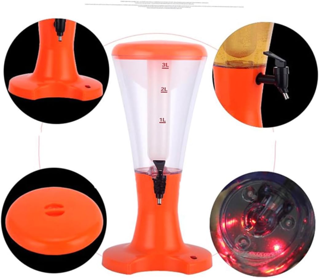 Package Include 1 * 3L Tabletop Wine Beer Tower Beverage Juice Dispenser with LED Colorful Shinning Lights (Black) Features - Color: Black beer barrel. - Size: Approx. 48 * 24 * 20 cm / 18.9 * 9.4 * 7.9 inch (L * W * H) beer tower. - Applicable places: bars, KTV,party, dinners, fruit juice shops, household juice dispenser. - Material: ABS & AS. - Easy for use and cleaning beer dispenser. - 3 L capacity, add more convenience to your party Beverage Dispenser. - Unique and precise design, looks pretty LED beer dispenser. - Multifunctional apply to cold drink, beer, tea, fruit juice and beverage. - Energy-efficient LED lights bring more fun atmosphereGoods Descriptionbeer tower and adults will love it at any meanings and wonderful parties.Beverage Dispenser This kind of portable dispenser is well made of material for and use.beer barrel With unique design and a capacity of 3 L, it applies to serve any beverage such as beer, soda, fruit juice, wine, iced coffee and teas
